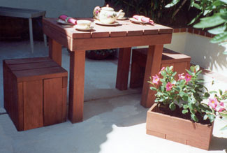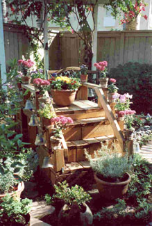 Another rewarding project was designing and building the redwood garden "bridge" (below). |
