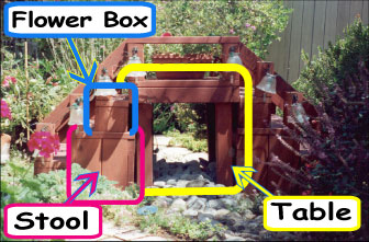 | The bridge had unique features (see below) and was a decorative focal point for the yard. | |||||||||||||||||||||