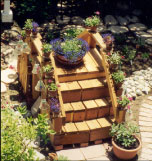 Another rewarding project was designing and building the redwood garden "bridge" (below). |